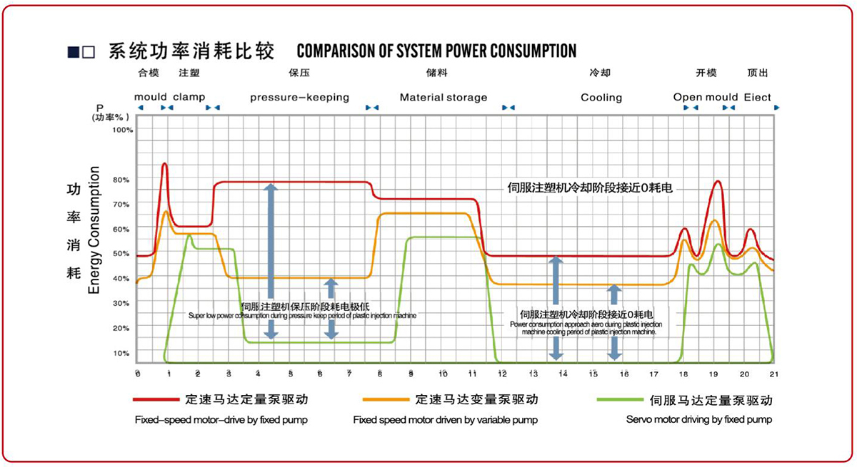 大幅節(jié)能:在等條件下,相比傳統(tǒng)定量泵注塑機節(jié)能 20%-80%